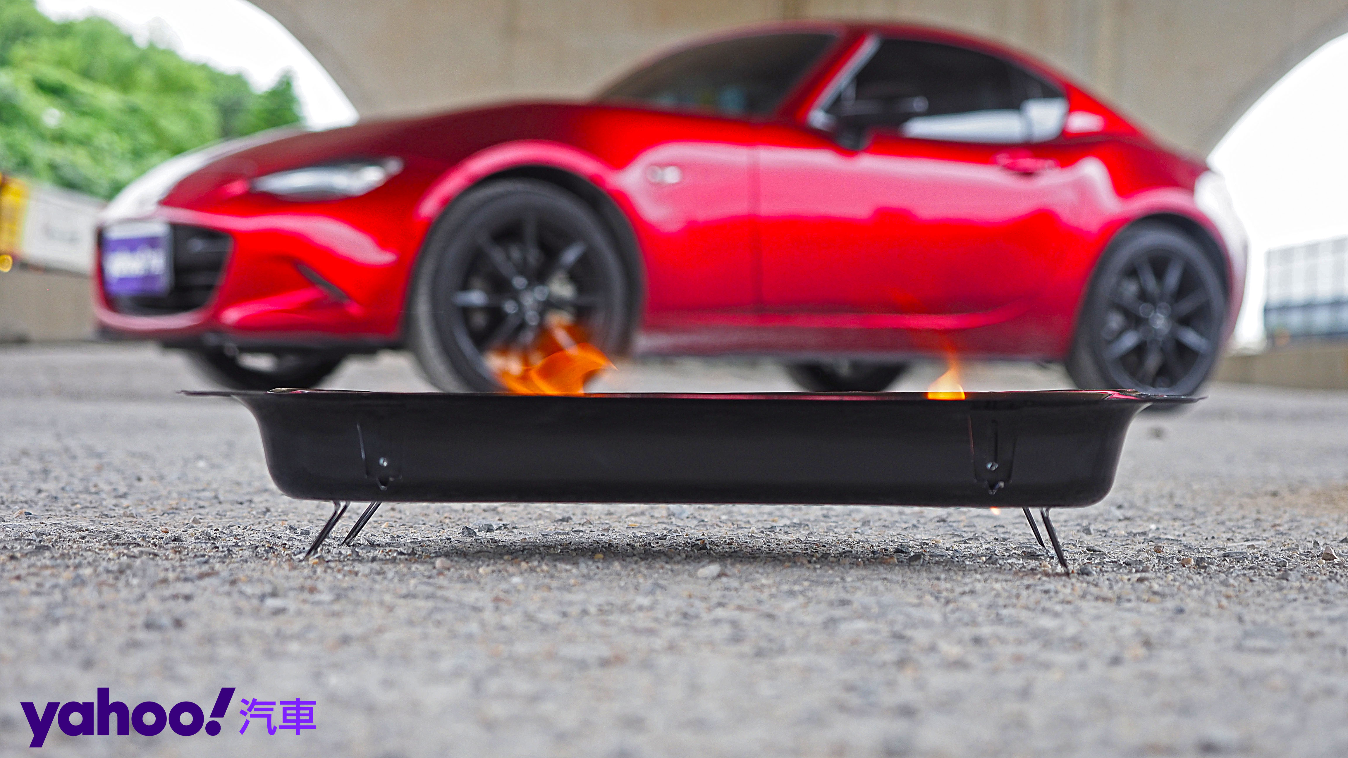 所以為了測試這款滅火器的實際威力,咱們特別弄了烤肉爐、在黑侍心愛的Mazda MX-5 RF燃起火焰......